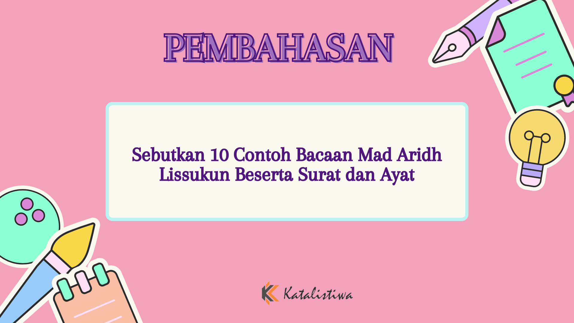 Selamat datang di Katalistiwa, blog untuk berdiskusi seputar pembahasan soal pelajaran dari Perguruan Tinggi, SLTA, SMP dan SD. Kali ini Katalistiwa akan membahas sebuah Soal yang banyak di tanyakan di Ujian Sekolah, Pertanyaannya adalah : Sebutkan 10 Contoh Bacaan Mad Aridh Lissukun Beserta Surat dan Ayat     Sebutkan 10 Contoh Bacaan Mad Aridh Lissukun […]